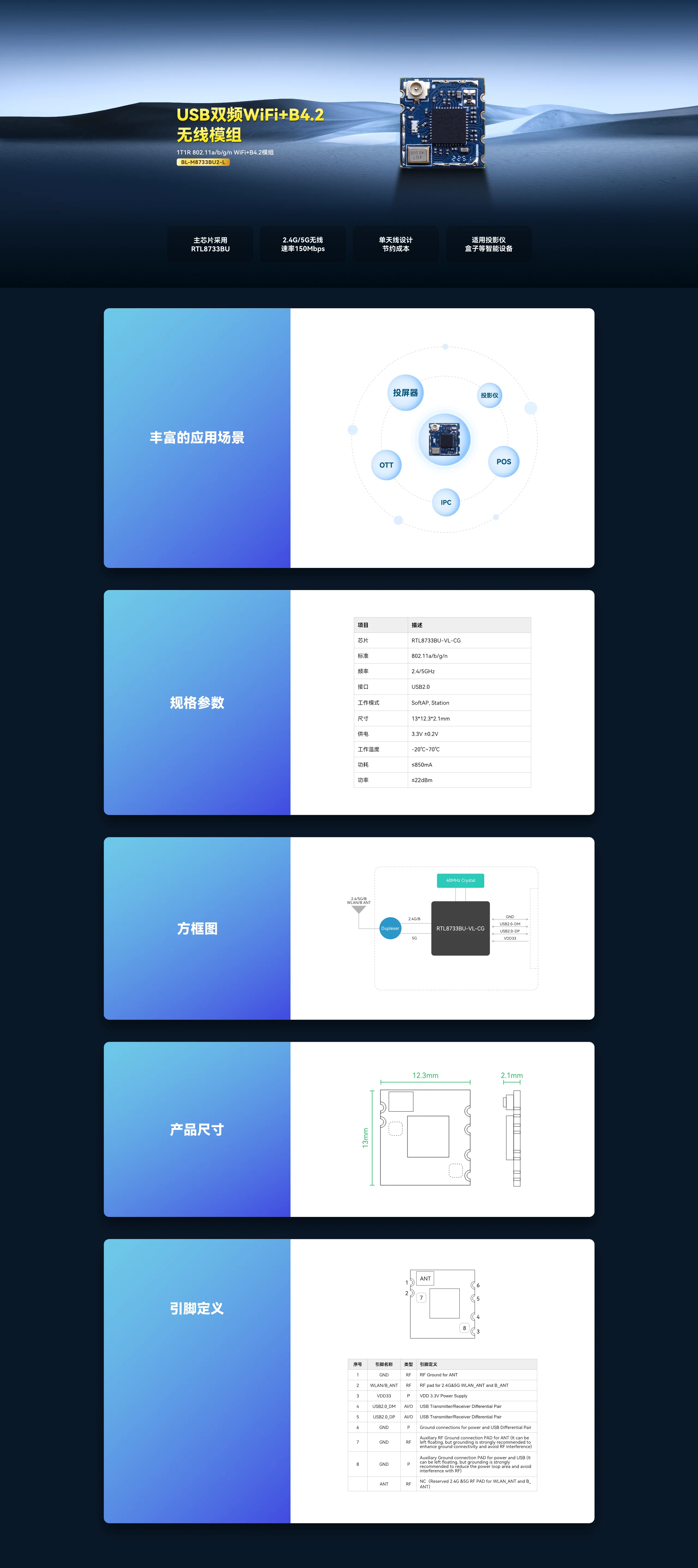 1T1R 802.11a/b/g/n WiFi+B4.2模组
