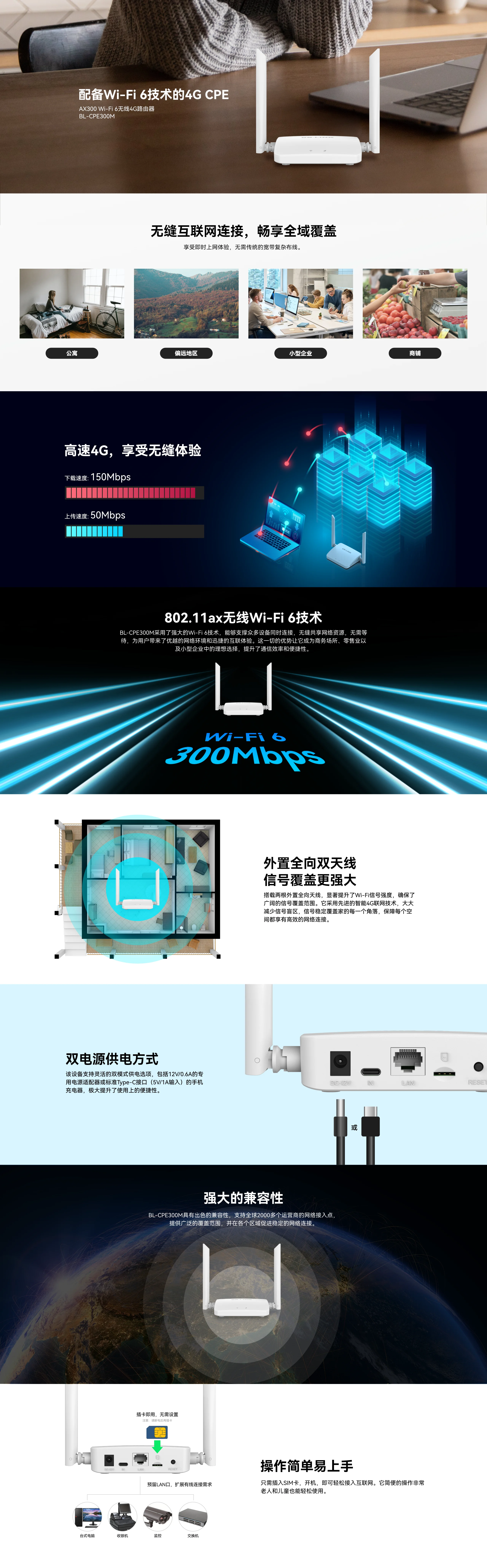 偏远地区 WiFi6 4G 路由器(BL-CPE300M)